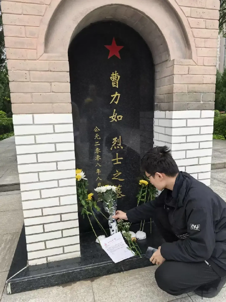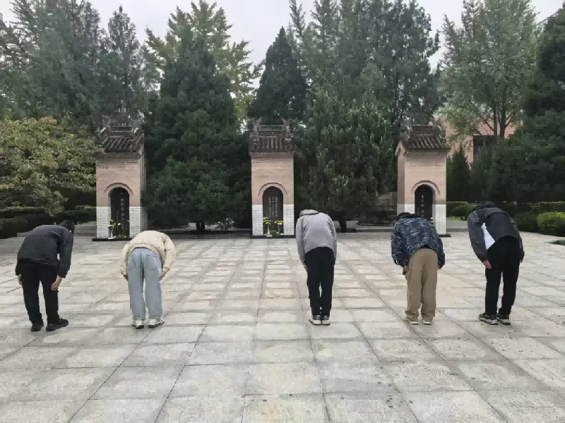 隨后,全體成員面向紀(jì)念碑肅立,默哀一分鐘,現(xiàn)場氣氛莊重肅穆,每個人都在靜默中追憶革命先烈的奮斗歷程。默哀結(jié)束后,成員們向紀(jì)念碑鞠躬致敬,表達(dá)對先烈的深切敬意。