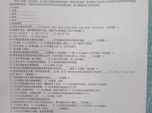 此圖為淮北師范大學歷史文化旅游學院長三角專項朱家角古鎮小組社會實踐團隊成員為開展調研向當地居民及工作人員提供的問卷的圖片。通訊員 張鈺 供圖