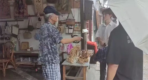 此圖為淮北師范大學歷史文化旅游學院長三角專項朱家角古鎮小組社會實踐團隊成員與當地居民進行交流的畫面,團隊成員傾聽居民講述朱家角古鎮的發展以及向居民提出調研問題的圖片。通訊員 張鈺 供圖