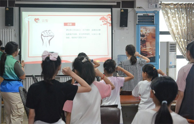 圖為志愿者帶著小朋友們進行莊嚴宣誓 張智坤 供圖