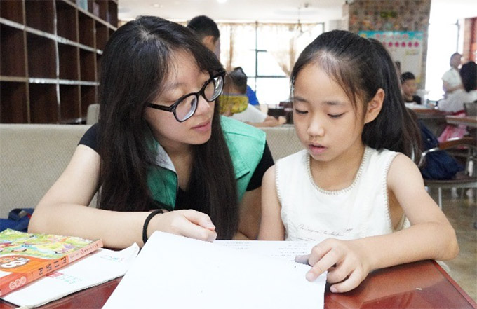 圖為志愿者給小朋友輔導作業張智坤供圖