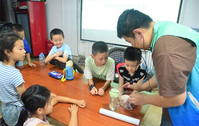 圖為志愿者和小朋友們一起進行“會跳舞的鹽粒”實驗張智坤 供圖