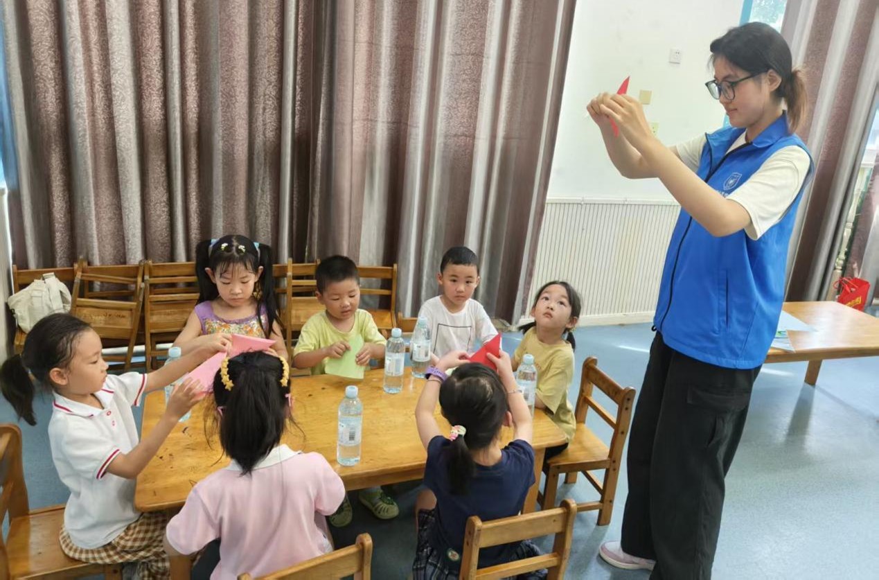 圖為志愿者教小朋友進行趣味折紙梁夢龍供圖