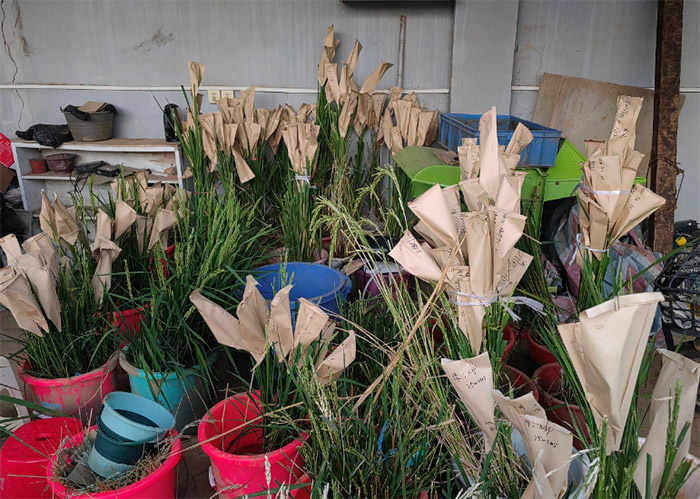 活動最后,兩支部成員共同前往田間地頭,實地體驗以“華墨香”材料為親本之一的雜交操作。大家拿起剪刀、手持鑷子,親身參與水稻去雄、套袋隔離等關鍵步驟。在此過程中,成員們深刻體會到農業科研“差之毫厘,謬以千里”的嚴謹性,也對全谷物產業“從實驗室到田間”的源頭培育過程有了更直觀的認知。