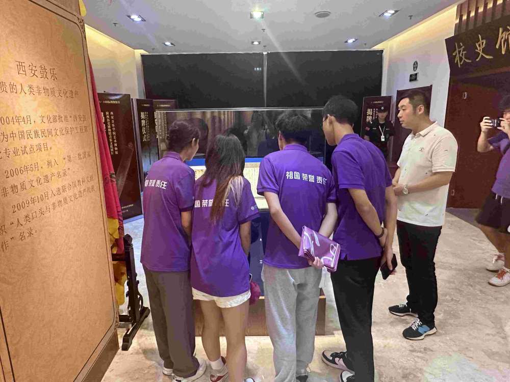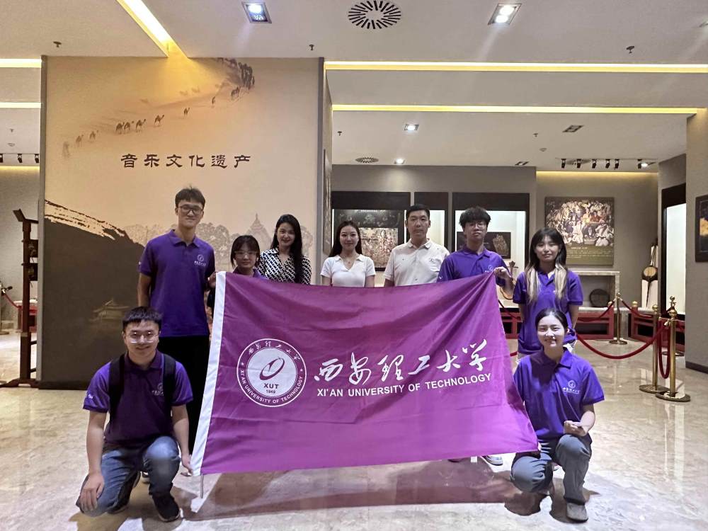 今年暑期,西安理工大學(xué)電氣工程學(xué)院“拾遺煥新,巧研古音”社會(huì)實(shí)踐隊(duì)前往西安音樂學(xué)院博物館進(jìn)行參觀。博物館內(nèi)包含西安鼓樂專題展區(qū)及陜西古代音樂文物展區(qū)。跟隨講解員的生動(dòng)解說,隊(duì)員們深刻感受到中國音樂文化的豐富和繁榮,這一時(shí)期西域諸國的音樂、器樂紛紛傳入中原,通過三彩駱駝載樂俑等考古文物,實(shí)踐隊(duì)員們見識到了早期長頸琉特類樂器、阮咸類琵琶樂器、編鐘、編磬、篳篥、排簫等樂器,通過壁畫、陶俑等了解了隋唐時(shí)期的樂舞文化。