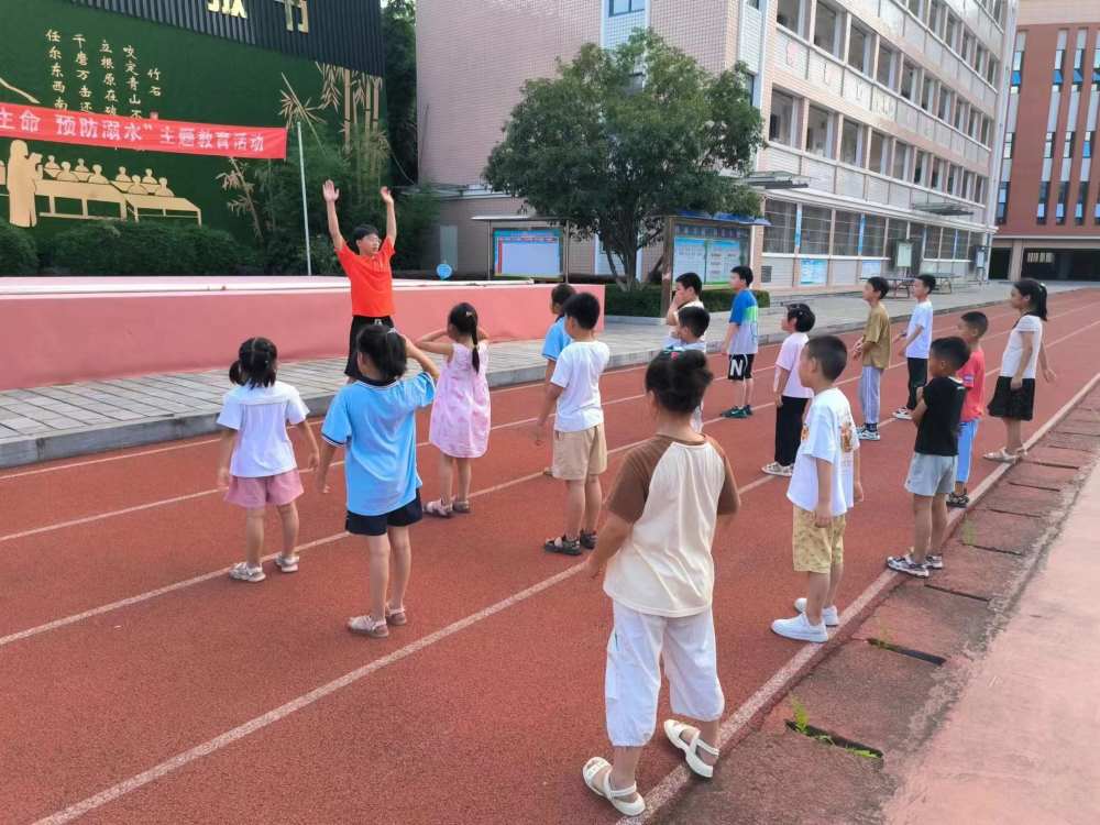 圖為蒲公英支教社會實踐團隊成員帶領孩子們熱身。