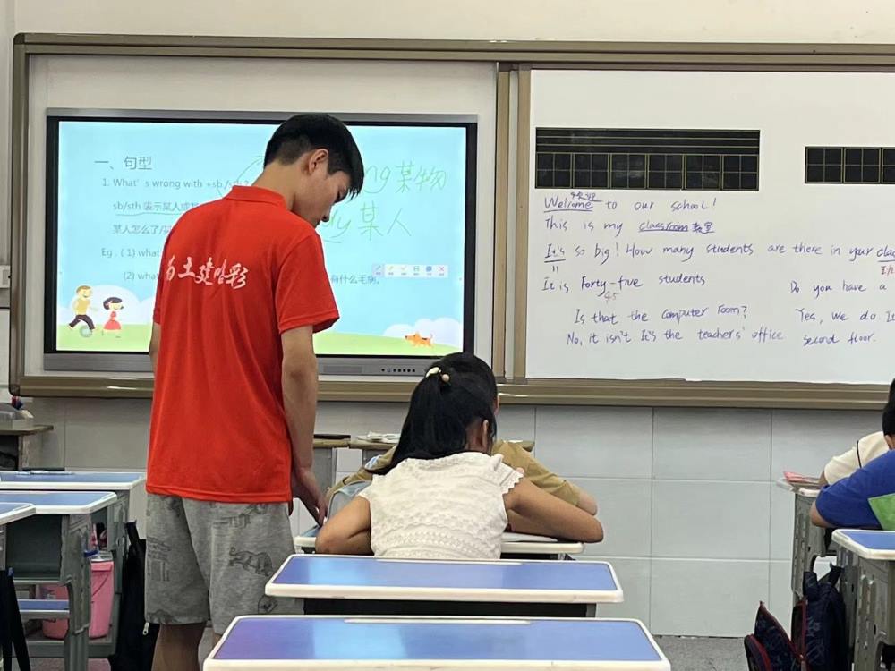圖為蒲公英支教社會實踐團隊成員給孩子上英語課。