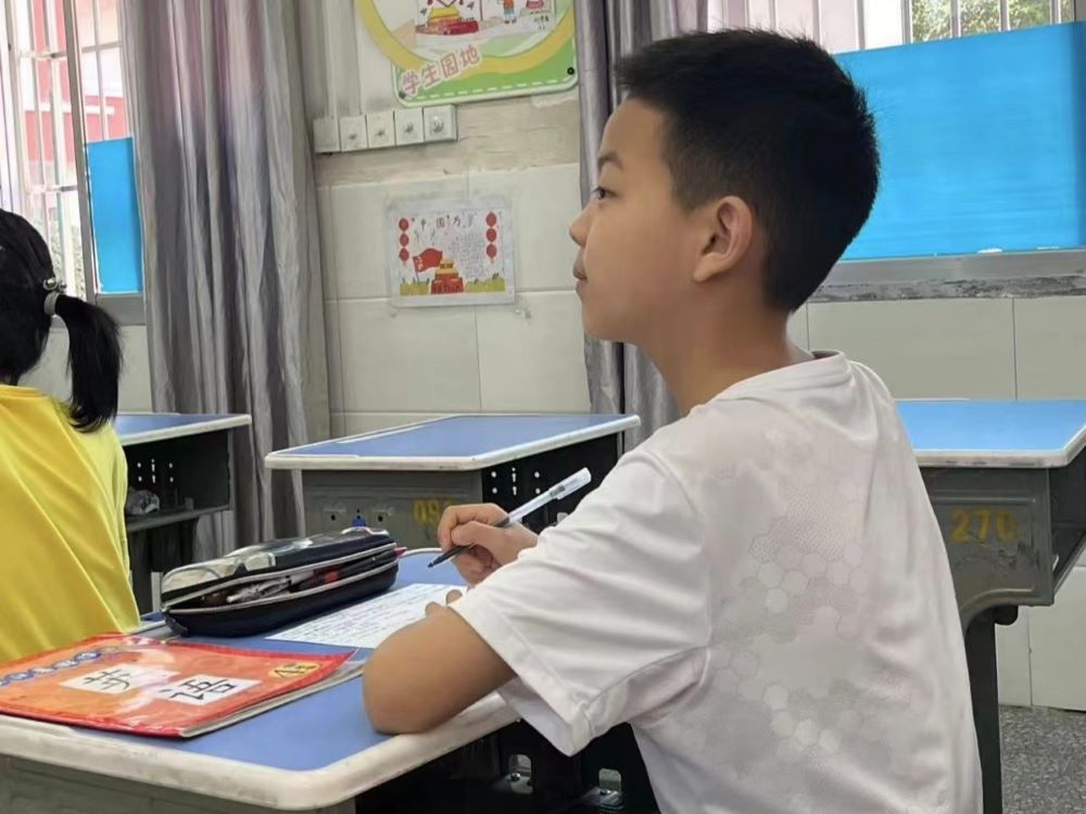 圖為孩子上課認真聽講。