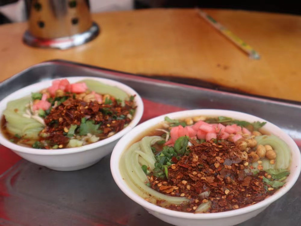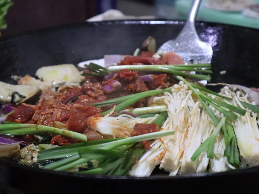 團隊更是在有幸在學習中品嘗感悟,貴州的羊肉粉選取當地的羊,味道鮮美,羊湯則是長時間熬煮,味道醇厚,再加上彈牙的米粉和羊肉片,一碗經過辣椒點綴后的羊肉粉吃出了滿足與幸福。貴州的菜肴中,常見的配料包括酸筍、豆腐干、黃豆芽等,這些都賦予了貴州菜獨特的口感和風味。