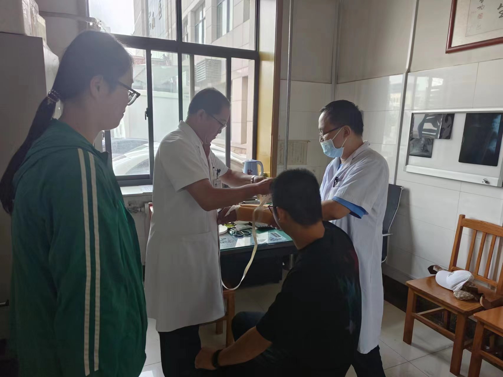 實踐隊員于7月22日上午來到了梁順興醫生所在的醫院,在采訪過程中,陸續來了幾位病人,實踐隊員認真觀摩了梁醫生的診療過程,梁醫生耐心回答病人的每一個問題,盡量讓病人得到最有效的治療,梁順興醫生談到,“當前民間正骨醫生的傳承是有限制的,真正傳授技藝的,往往是一代一出,最多兩個。甚至還有一些不學無術的騙子,在看過醫書后,就成了一名中醫大夫。目前由于醫療保障體系的限制,病人需要申報、評定殘疾,而醫保系統又是定點醫院,并沒有私人醫生。知道民間正骨的病人,因為醫療體系的限制,無法進行正規的正骨手術。民間的正骨醫生,也是寸步難行。”梁醫生并沒有因為前方道路的艱險而后退,他堅信梁氏骨科的前景是光明的。