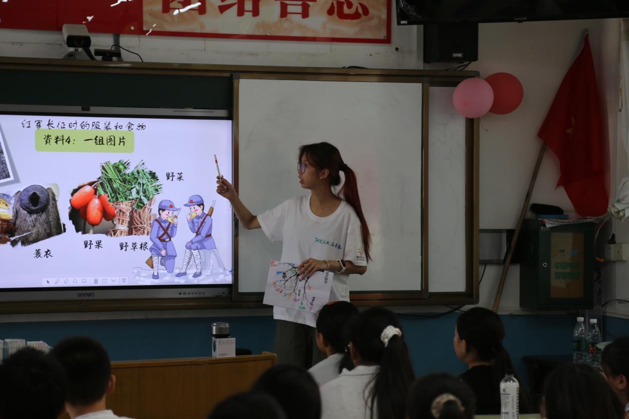 袁家溝的革命故事在課堂間流淌,志愿者以質(zhì)樸的語(yǔ)言向同學(xué)們講述了先輩們的熱血事跡;長(zhǎng)征紅小丫的勇敢身姿,隨故事講解走進(jìn)孩子們視野,搭配紅軍小背包手工制作,針線穿梭間,“不畏艱苦、迎難而上”的紅軍精神悄然植入同學(xué)們的心間。志愿者們通過(guò)課堂講述,以多元的形式傳遞紅色精神,厚植家國(guó)情懷。