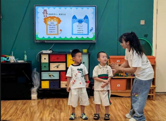 實踐隊走進幼兒園,開展系列推普活動,將推普與健康知識融合:開設 “推普小課堂”,通過故事講述、“詞語傳聲筒”、“普通話繞口令”、“動畫片配音”、合唱《推普五字歌》等游戲互動,引導孩子們學說普通話;鼓勵孩子們用普通話表達想法和感受。活動中穿插講解簡單的兒童健康小常識。