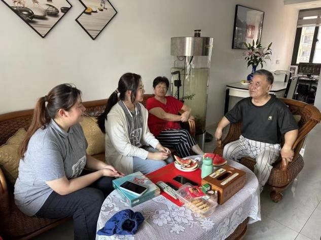 老黨員們慈愛的目光,也始終追隨著這些年輕的身影。“學(xué)業(yè)緊張嗎?”“對未來有什么規(guī)劃?”他們緊握同學(xué)們的手,關(guān)切之情溢于言表,宛如對待自家孫輩。這不僅是一次慰問,更是一場跨越歲月的真誠對話:一邊是青春熱忱的探詢,一邊是飽含期許的叮嚀。兩代人的心語流淌,讓整個社區(qū)浸潤在溫暖而充滿敬意的氛圍之中。