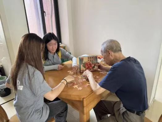 這次,他們不再僅僅是“服務(wù)者”,更是“聆聽者”與“同行者”。發(fā)揮社會工作專業(yè)所長,同學(xué)們精心策劃了"結(jié)對陪伴老黨員"活動,以"共拼時光"為媒。一幅幅色彩斑斕的拼圖,在年輕學(xué)子和老黨員們手中傳遞、拼接。指尖輕觸間,不僅是圖塊的契合,更是兩代人心靈的靠近。同學(xué)們專注傾聽老黨員講述崢嶸歲月里的紅色故事,也在輕松的互動中,分享著新時代青年的見聞與夢想。