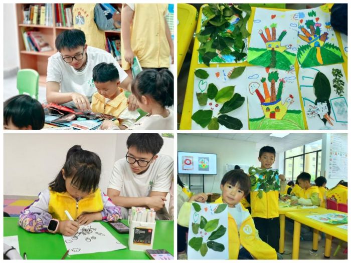 在“用樹葉進行繪畫”的課堂上,志愿者帶領孩子們走進大自然,收集形態各異的樹葉;氐浇淌液螅⒆觽兂浞职l揮想象力,用彩筆、顏料為樹葉添上獨特的色彩和圖案,有的將樹葉變成了翩翩起舞的蝴蝶,有的繪制成了茂密的森林。一片片平凡的樹葉在孩子們的創作下,成為了承載夢想與創意的藝術品,讓孩子們領略到自然與藝術融合的奇妙之美。