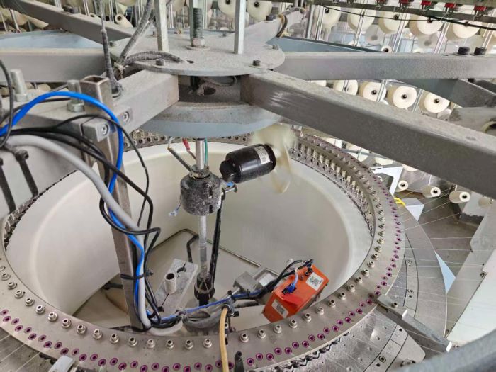 圖為疵布檢測設備在大圓機上的裝配圖 李仲勤攝