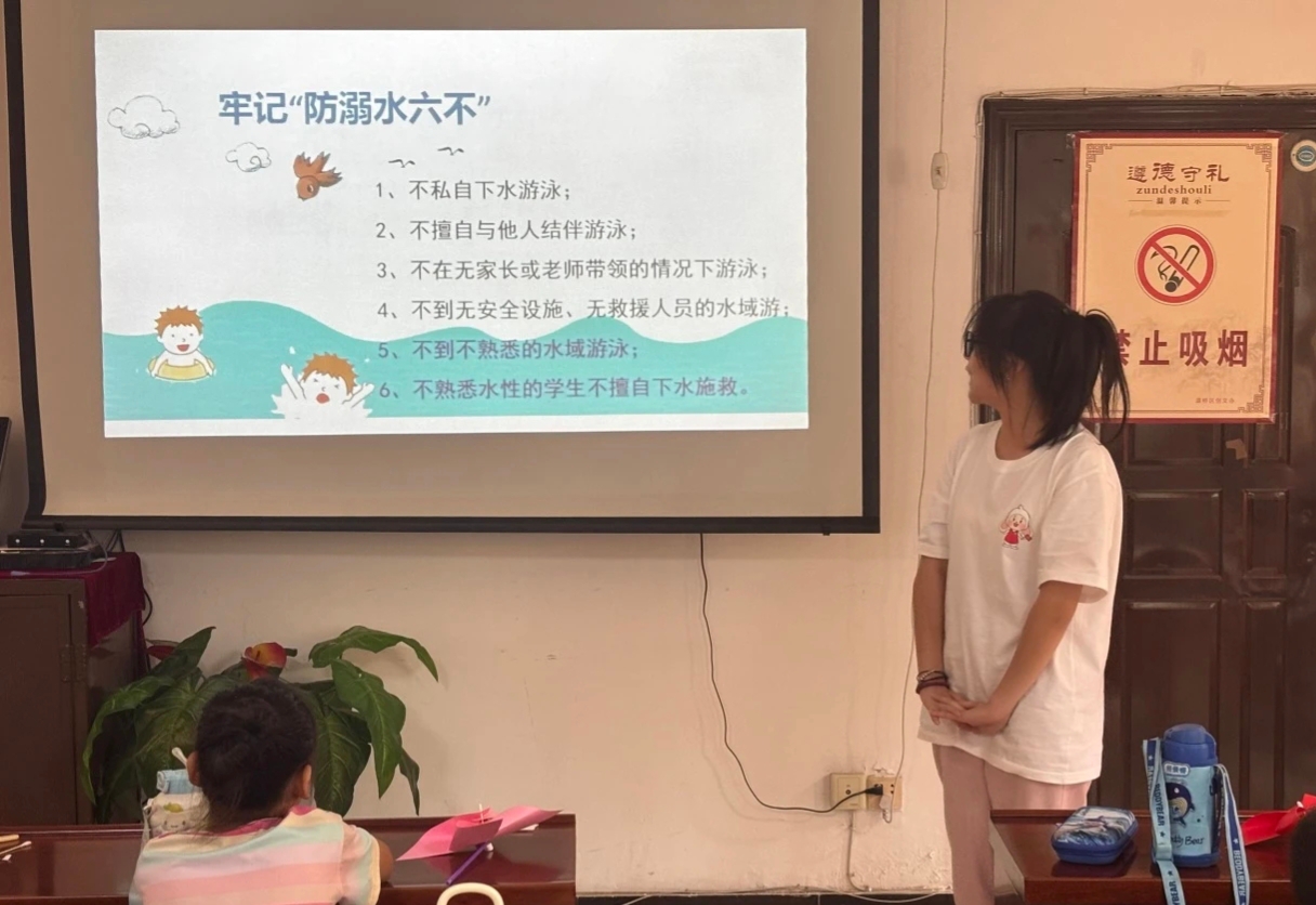 01活動伊始,實踐團成員們化身“小老師”,一對一耐心解答孩子們在暑期作業中遇到的難題。成員們結合自身學習經驗,用通俗易懂的方式講解知識點,還鼓勵孩子們互相討論,培養他們獨立思考的能力。作業輔導結束后,團隊成員李張琳璐通過動畫演示和互動問答,讓孩子們了解溺水危險,掌握安全知識,學會正確呼救和自救,遠離危險水域。