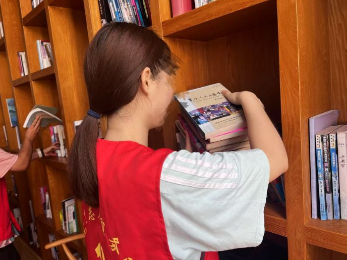 調研當天,正是文化禮堂的“圖書整理日”,隊員們當即加入村民志愿者的隊伍,一起給新到的書籍分類、貼標簽、上架。“這些農業技術書很有用!我們種了一輩子茶、桃,查了資料才知道還有那么多門道!”一位參與書籍整理的老奶奶告訴隊員們,她種了一輩子桃樹,去年通過書中的“疏花疏果”技術,產量提高了三成。