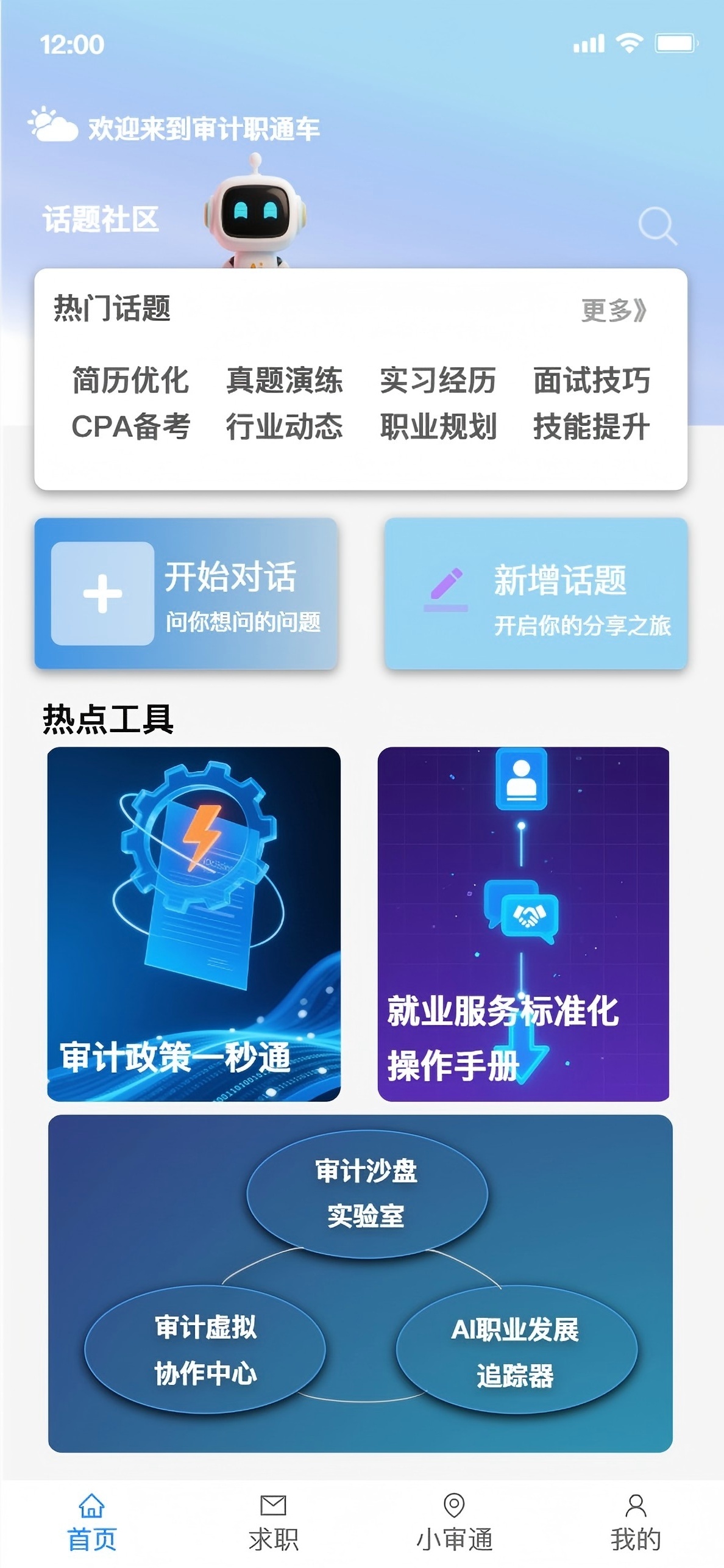 同時,團隊成員在與會計師事務所項目經理的聊天中發現,審計行業的人才招聘呈現出多元化趨勢。除傳統審計專業外,法律、計算機等跨學科背景的畢業生正大量涌入。法律專業人才在風險管控與爭議處理中展現優勢,計算機專業人員則依托IT審計等技術專長大幅提升審計效率。這種復合型人才需求的增長,不僅重塑了行業用人標準,也對傳統審計專業畢業生形成了直接沖擊。他們需要在鞏固專業核心能力的同時,加速向“審計+”復合型人才轉型,才能在競爭激烈的就業市場中保持優勢,這也成了團隊搭建APP的核心動因。
