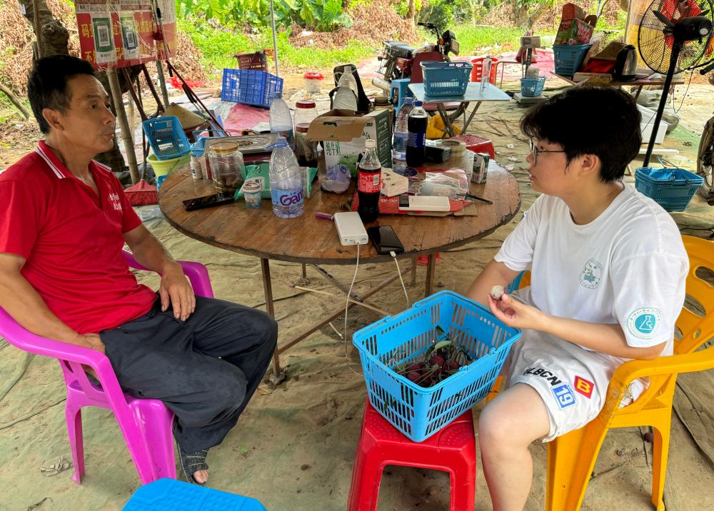 圖為開展工作前,團隊成員與荔枝林老板溝通的場景  黃琳琳攝