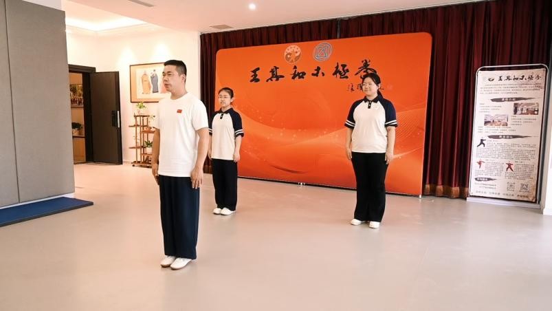 訪談結束后,盧老師為隊員們展示了王其和太極拳前三式的動作要領,并耐心糾正同學們打拳動作的細節問題。