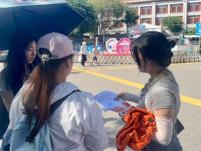 圖為團隊成員向路人介紹本次調研背景 林虹余通訊員攝