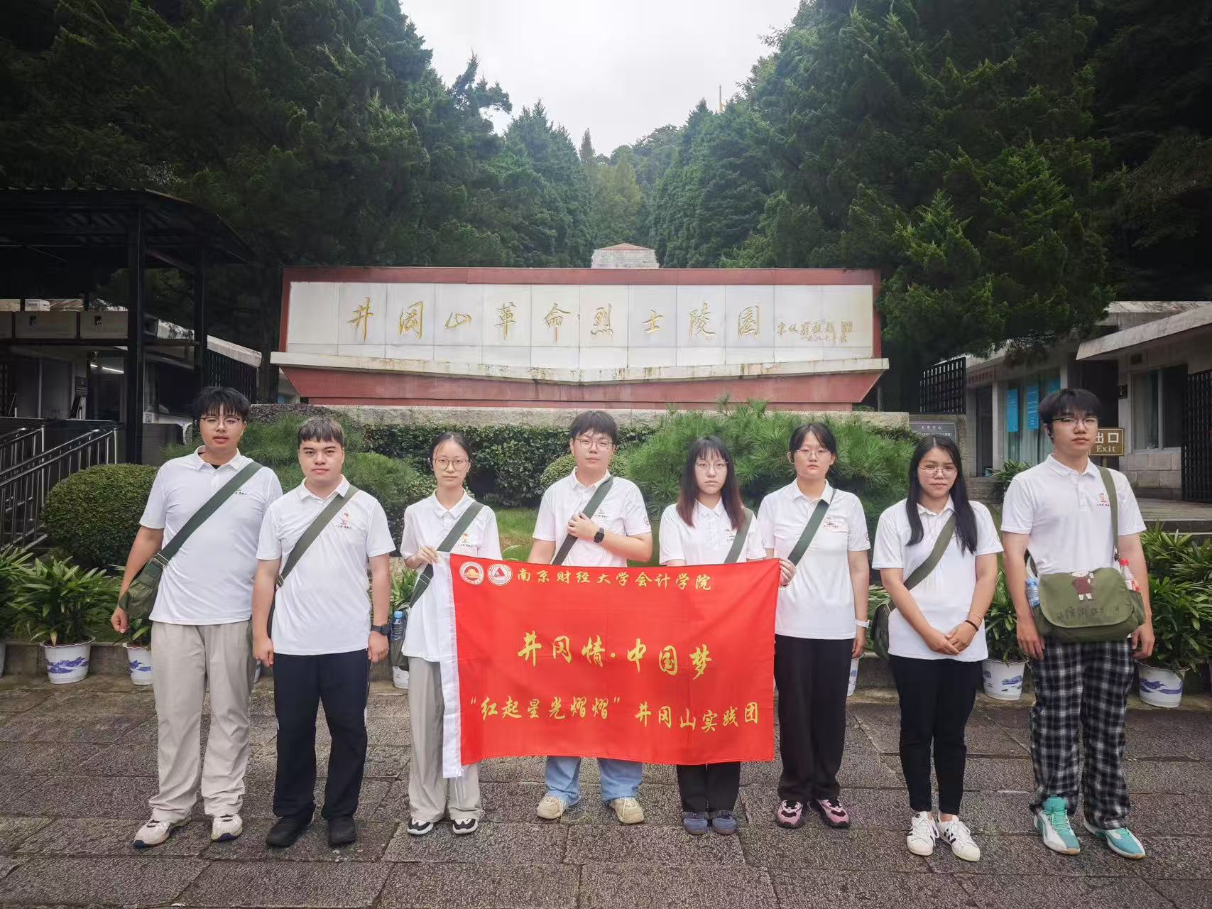 圖為團(tuán)隊成員在井岡山革命烈士陵園前合影