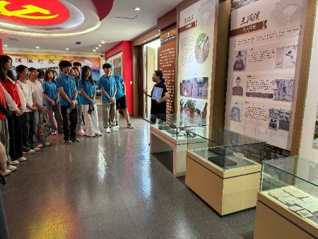 (圖為山東理工大學“紅脈潤溪”實踐調研團參觀三澗溪展覽館)