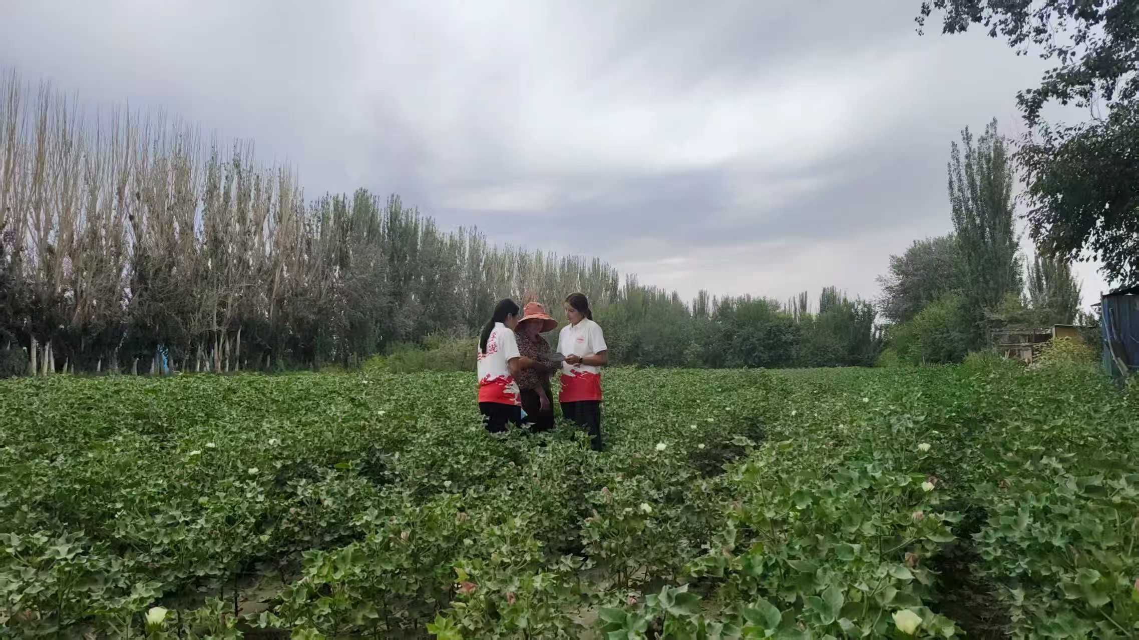 7月4日,食品科學與工程學院“石榴籽助學計劃·邊疆政策春風行”社會實踐團隊抵達科克庫勒村。在聯(lián)絡員協(xié)助下,隊員兵分兩路入戶訪談,通過“一對一講解”,把國家教育資助政策送到村民手中。農忙之際,團隊創(chuàng)新開設“田間小課堂”,在棉花地頭為勞作農民現場解讀政策要點。宣講結束,隊員主動拿起農具,和村民一起進行棉花打頂作業(yè),在勞動中加深與村民的情感聯(lián)結 。