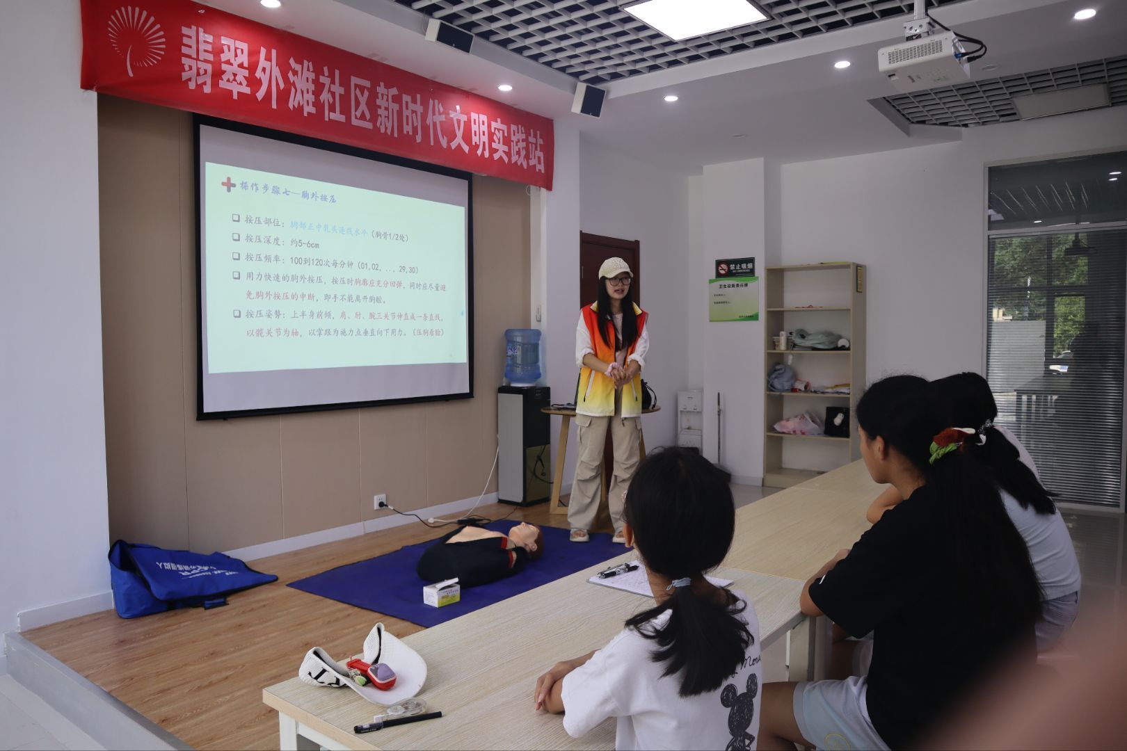 2025年8月20日,山東大學(xué)護(hù)理與康復(fù)學(xué)院南丁格爾志愿服務(wù)隊(duì)成員走進(jìn)翡翠外灘社區(qū),為社區(qū)同學(xué)們帶來(lái)一節(jié)兼具實(shí)用性與意義的心肺復(fù)蘇技能培訓(xùn)課程。本次課程旨在填補(bǔ)同學(xué)們急救知識(shí)空白,播撒安全種子,幫助大家掌握關(guān)鍵的心肺復(fù)蘇技能,樹(shù)立“生命至上”理念,以便在緊急時(shí)刻能為生命保駕護(hù)航。