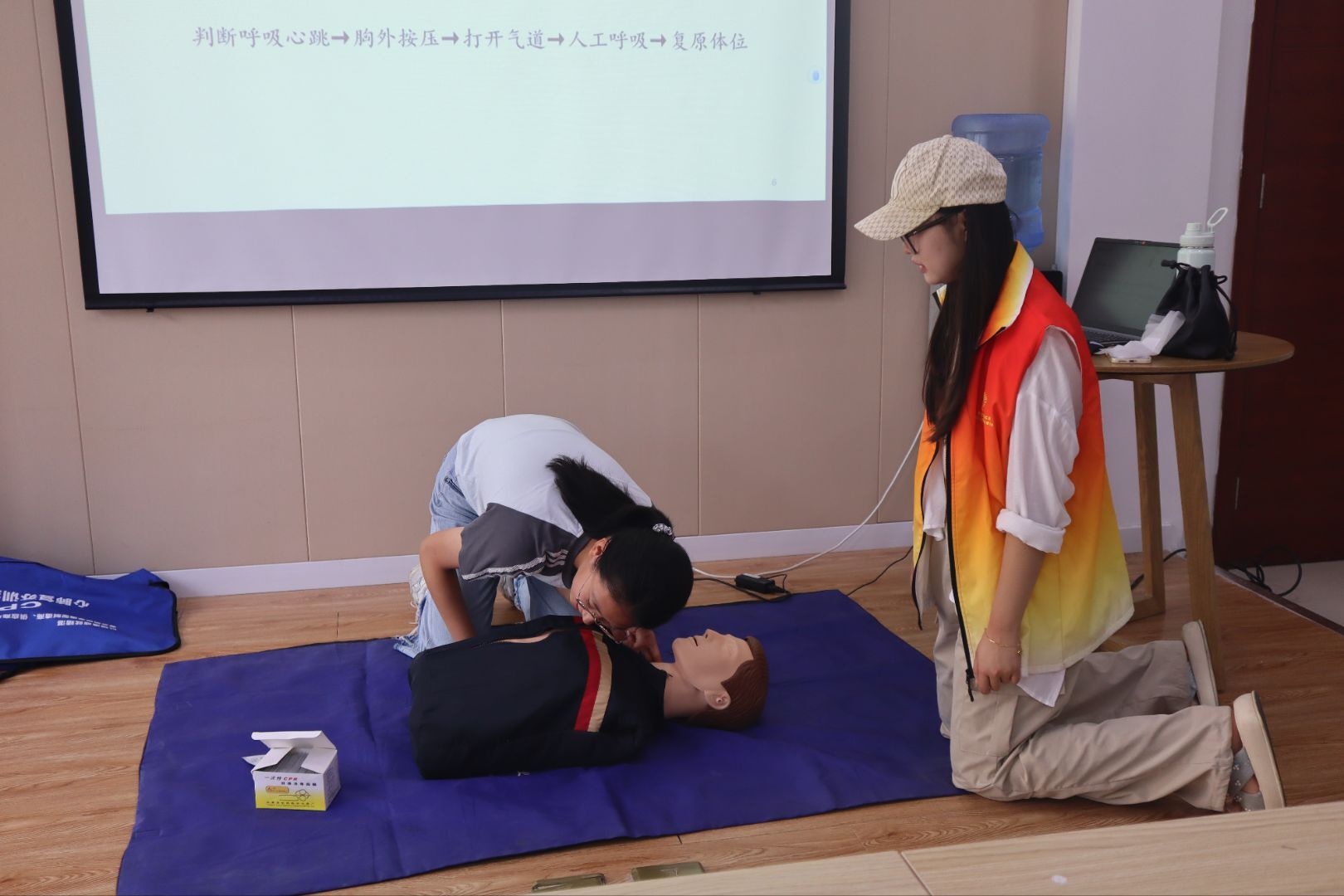 在核心的操作要領(lǐng)講解環(huán)節(jié),志愿者對(duì)心肺復(fù)蘇的每一個(gè)步驟都進(jìn)行拆解演示,內(nèi)容涵蓋胸外按壓的準(zhǔn)確部位、標(biāo)準(zhǔn)深度、規(guī)范頻率,以及人工呼吸的正確姿勢(shì)和諸多注意事項(xiàng)。令人驚喜的是,每一位同學(xué)都全神貫注,部分同學(xué)甚至不自覺(jué)地跟著志愿者的手勢(shì)同步模擬操作,展現(xiàn)出極高的學(xué)習(xí)熱情與專(zhuān)注力。