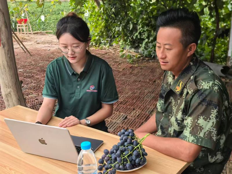 成員們與當地果農共同體驗AI推普工具,果農們通過智能對話學習帶貨話術,在互動中提升普通話應用能力,為后續直播打下基礎。葡萄藤架下,實踐團開啟助農直播。成員們和果農手持飽滿紫黑的巨峰葡萄,用標準普通話講述其“從日本引入中國,在新疆扎根結果”的故事,還融入“蒲桃”的古詩典故,讓果香里飄出文化味。曾經因語言不暢難以對接市場的農戶,如今能在鏡頭前自信介紹自家產品,普通話帶來的不僅是溝通便利,更打開了致富增收的新路徑。