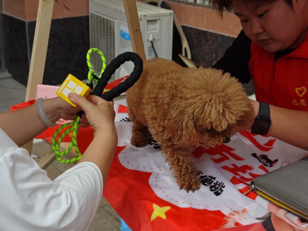 活動現場,寵物養護與馴導專業的志愿者們為轄區居民提供寵物養護和美容服務,志愿者們憑借專業的技術和細心的服務,為社區寵物免費修剪毛發,同時,也向居民普及狂犬病傳播途徑、危害及防控知識,重點講解被犬只抓傷、咬傷后的科學處置方法,倡導居民能夠依法養犬、文明養犬,贏得居民一致好評。