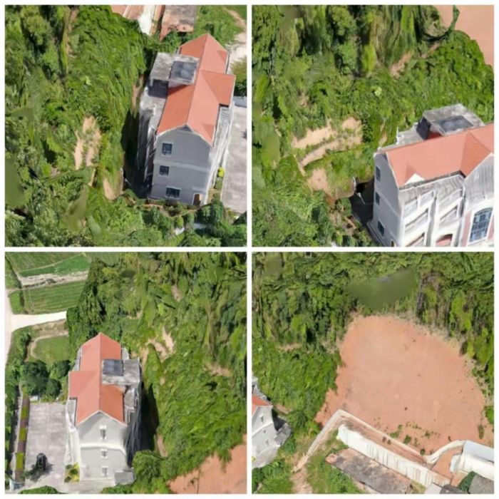 下午,團隊操作無人機對謝家坳村重點切坡建房區進行了無人機三維傾斜攝影,全面了解地質災害潛在風險區的地形地貌特征。無人機在高空盤旋,精準地獲取了高精度的地形數據,為后續的邊坡穩定性定量評價提供了有力支持。隨后,在李德營教授的悉心指導下,團隊運用Geo-studio軟件開展了10年、20年、50年、100年不同降雨重現期邊坡穩定性計算,并完成了一份詳細的風險評估報告,制定了符合當地居民生活習慣的汛期地質災害防控措施:住前不住后,住上不住下;地質災害便捷減災措施。與此同時,無人機實測數據與科研成果被納入了當地地質災害風險防控中,為當地的地質災害防災減災提供了堅實的技術支撐。