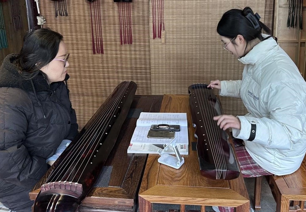 圖為實踐隊隊員在古琴街學習彈奏古琴。中國青年網通訊員 呂曉翔 攝。
