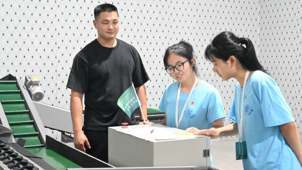 公共管理學院“青”耘慈溪,“春”耕有我實踐支隊操作蜜梨篩選機器