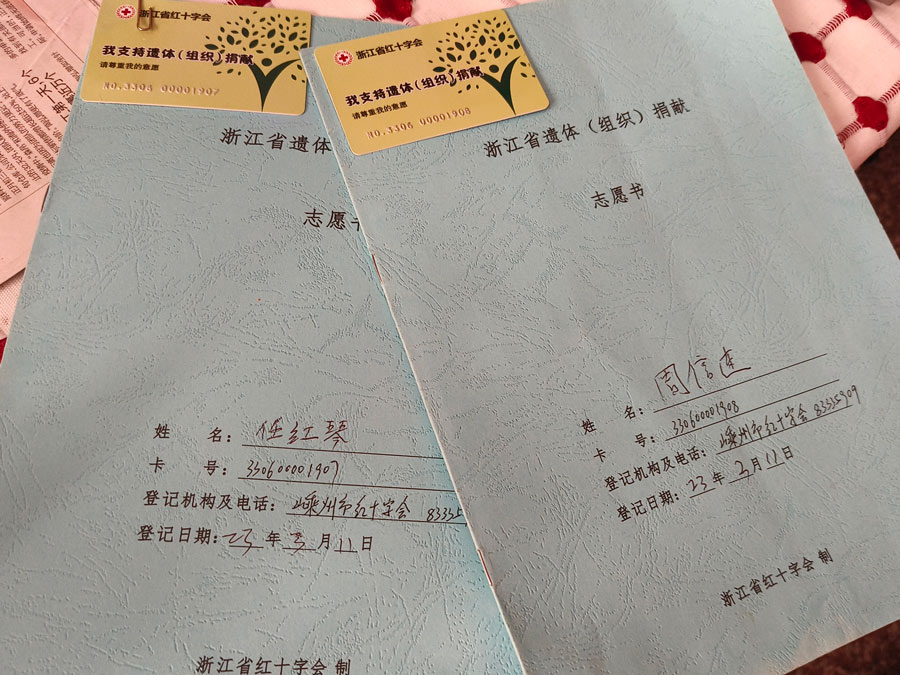 圖:周爺爺與任奶奶的遺體(器官)捐獻志愿書