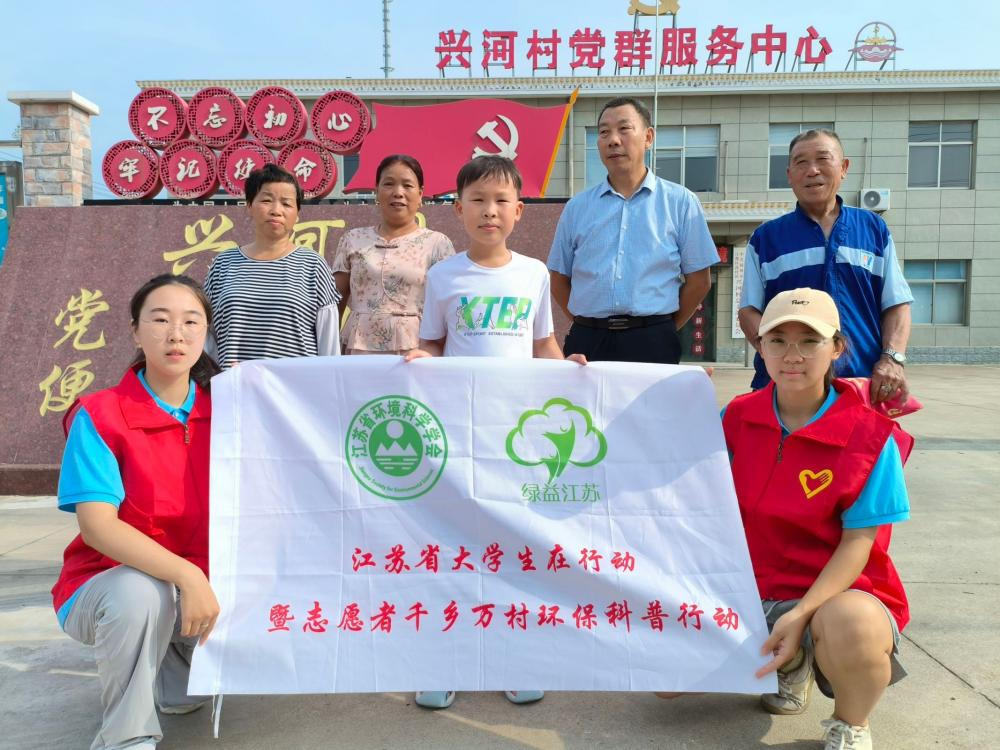 8月6日,小分隊沿著新通揚運河順流而下來到了郭村鎮興河村以及吳橋鎮王河村進行調研和宣傳。活動開始前,成員李秋慧和朱雨馨向村主任雷如興了解了興河村近年來水質治理情況以及河長制實施情況,并且為參與宣講的村民們發放了宣傳讀物、明信片和水龍頭起泡器實驗材料。