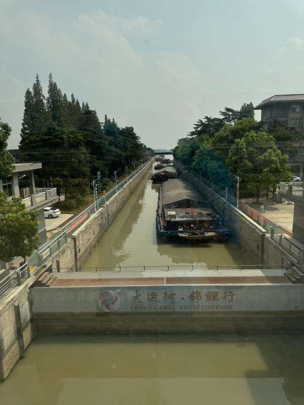 8月5日,小分隊前往江蘇省揚州市江都區邵伯鎮,對著名的邵伯船閘進行了深入的學習調研。抵達邵伯船閘后,小分隊受到了船閘管理處的熱情接待。在工作人員的細致引導下,成員們有序參觀了船閘的主體結構,包括閘室、閘門、啟閉設備等關鍵部位,詳細了解了船閘的運行原理和操作流程。通過實地觀察,成員們深刻感受到了船閘在保障航運暢通、調節水位等方面所發揮的重要作用,對水利設施的復雜性和重要性有了更加直觀的認識。