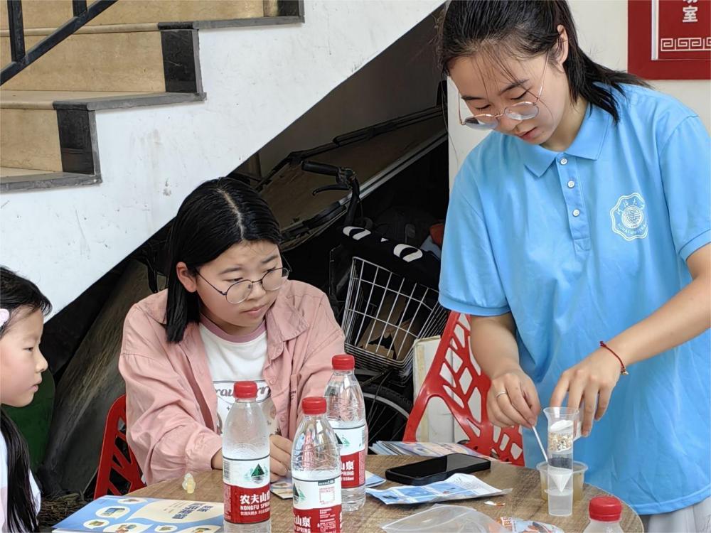 活動開始,成員先就主要水污染來源進行講解,此后小分隊成員將主題引進到如今水質治理,提出了“人人都是小河長”的倡議。最后,李秋慧同學帶領村民們制作了水龍頭起泡器。