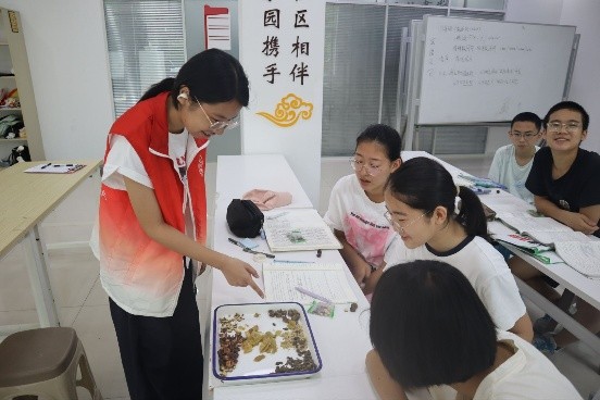 專業明炬提燈行,安全警鐘心長鳴。團隊始終秉持“健康第一”的服務理念,充分發揮醫學專業優勢,將健康科普化為生動課堂,傳遞關懷與希望。心肺復蘇課上,孩子們以稚拙手勢全力按壓,初探生命守護之道;創傷包扎課中,隊員們一對一、手把手指導,同學們持繃帶認真纏繞,習得安全自護之技;健康科普課堂,日常健康知識化作有趣事例,深深印入純真腦海;氣道梗阻急救課,海姆利克急救法被反復演示,孩子們環抱模擬,牢記者生命的擁抱;口腔衛生講座,正確刷牙成為焦點話題,細心引導助力良好習慣;中醫啟蒙課里,草藥清香彌漫課堂,孩子們辨識百草、輕觸脈象,感受傳統醫學的博大與奇妙。