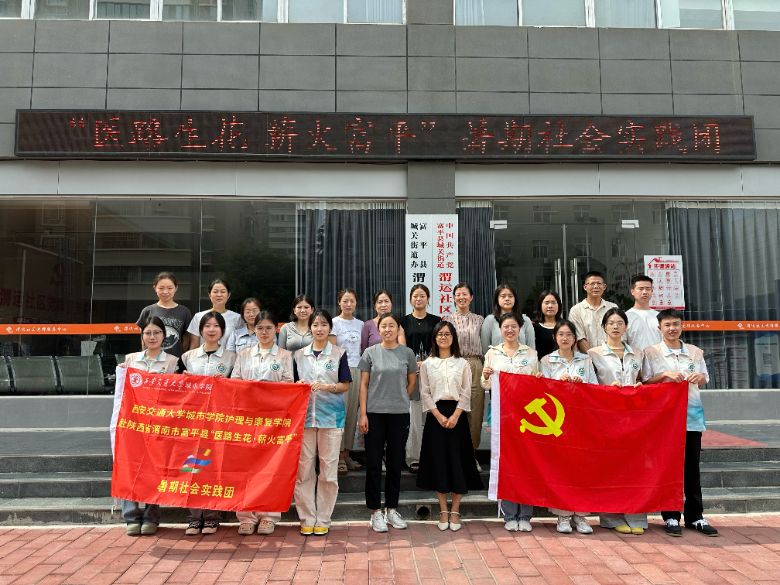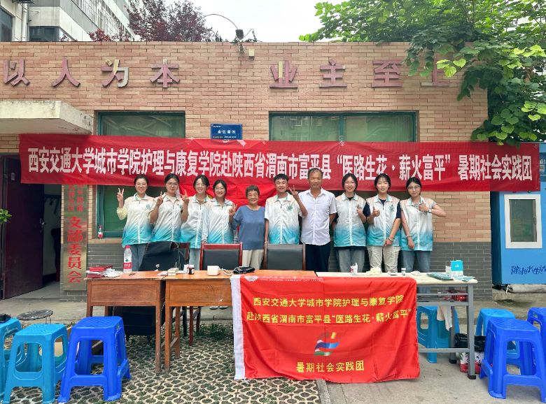 “醫路生花·薪火富平”暑期社會實踐團與渭運社區居委會合照(王怡婷 攝)