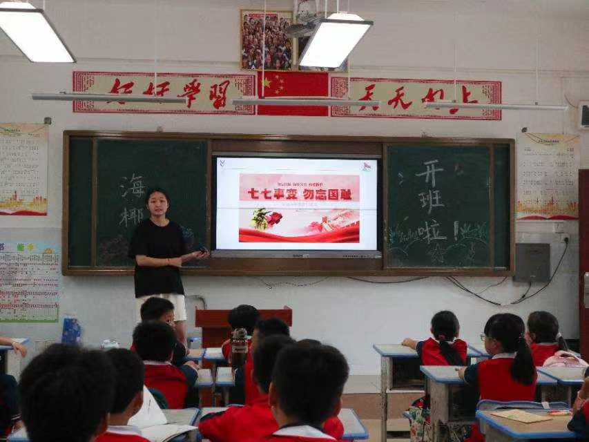 海椰志愿服務隊組織孩子們觀看了一部反映抗日戰爭的紀錄片。紀錄片生動再現了“七七事變”的爆發及人民在抗日戰爭中的英勇事跡。活動現場,孩子們通過鏡頭直觀感受 1937 年盧溝橋畔的硝煙戰火,紀錄片以真實影像與史料,生動再現了七七事變爆發時日軍的挑釁行徑,以及中國駐軍第二十九軍奮起抵抗的英勇場景。