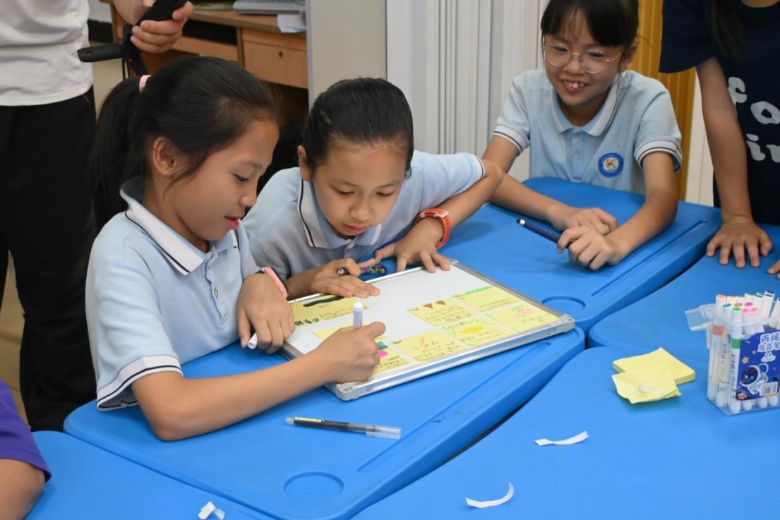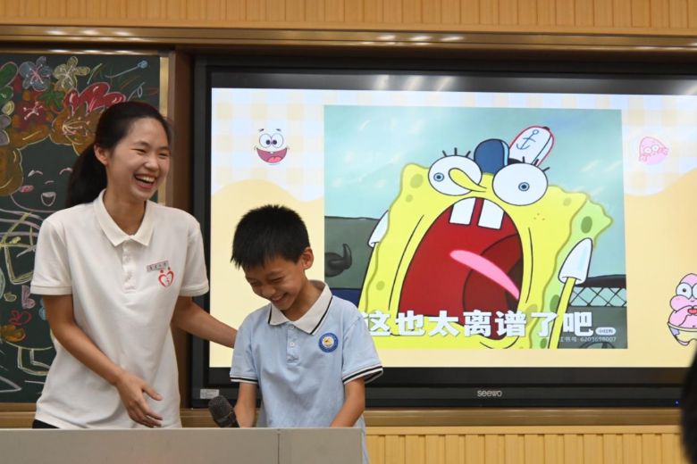 圖為實踐隊員詹璐與學生互動。何云凱攝
