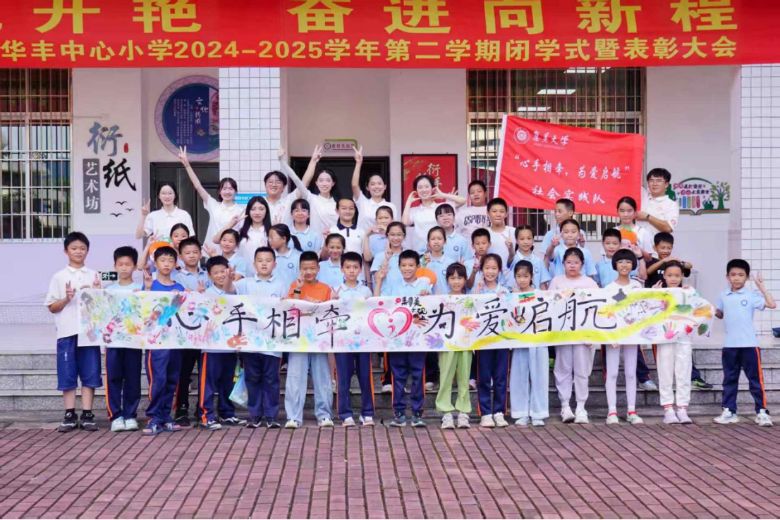 蟬鳴掀開六月的簾幕時,我背著塞滿教案的雙肩包,跟著集美大學“心手相牽,為愛啟航”實踐隊踏入漳州華安。四天里,華豐中心小學的走廊、教室,乃至操場,都成了我與孩子們編織成長故事的織機。那些或笑或淚的片段,像散落在夏日的拼圖碎片,拼出了青春與童真碰撞的奇妙軌跡,也讓我們看到這場實踐在孩子成長與社會層面的價值。