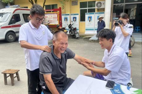 活動中,實踐團成員們將課堂所學轉(zhuǎn)化為服務鄉(xiāng)梓的實際行動,為鄉(xiāng)親們提供多元化健康服務。