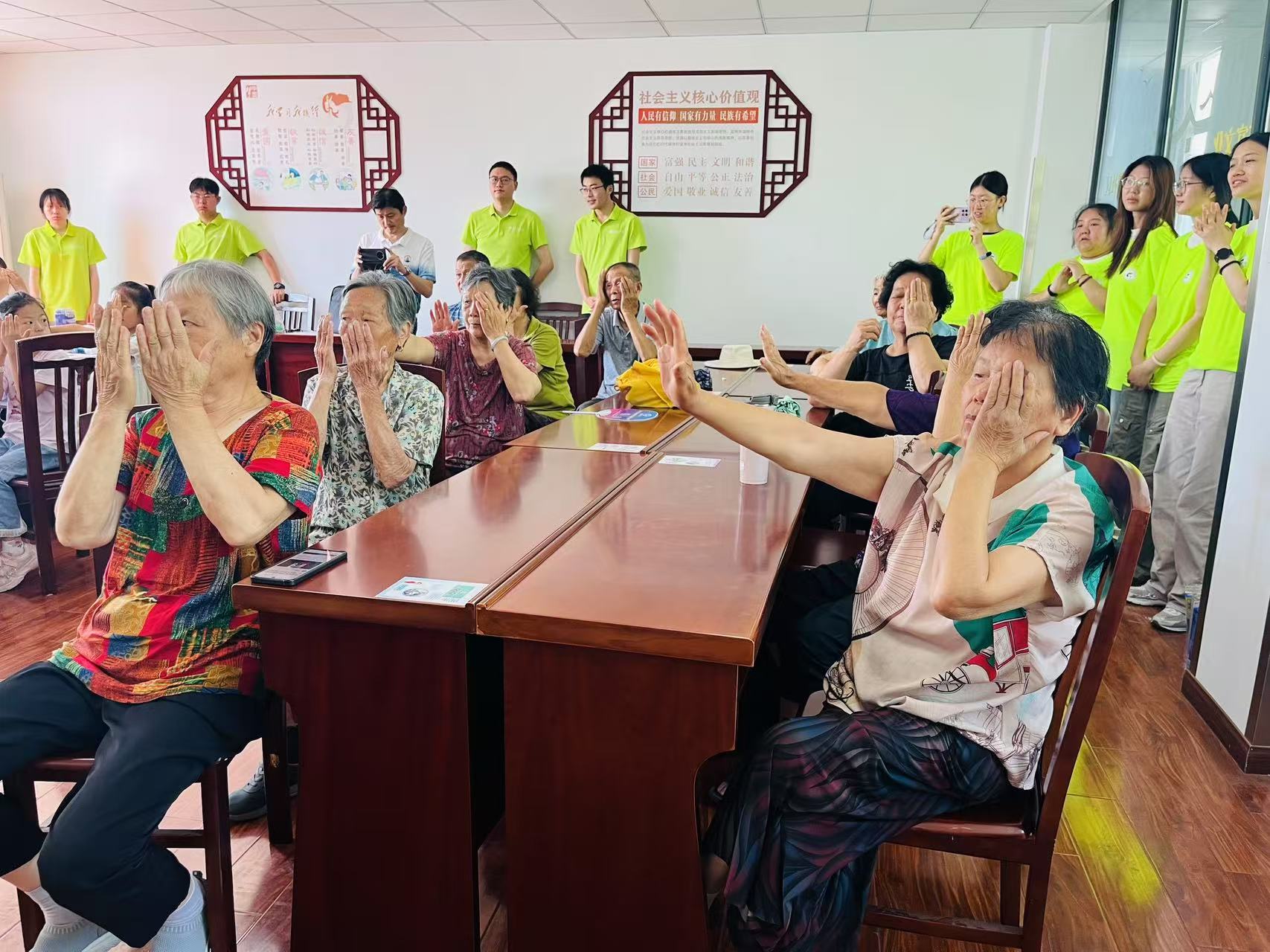 為了讓老人們更好地保護眼睛,實踐隊成員現場教學護眼操。隊員們耐心示范,從手指的按摩力度到頭部的轉動幅度,一一細致指導。老人們認真模仿,跟隨節奏,緩緩轉動眼球、按摩眼眶。經過幾次練習,大家逐漸掌握了動作要領。