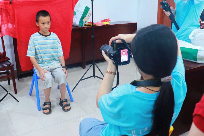 在志愿者的引導下,小朋友們自信大方地面對鏡頭。薄薄的證件照握在小朋友小小的手心時,青春稚嫩的臉龐上是藏不住的笑意。