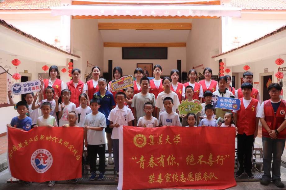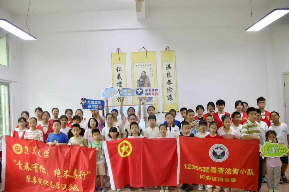 為推動(dòng)禁毒教育工作深入開(kāi)展,切實(shí)增強(qiáng)社區(qū)青少年識(shí)毒、防毒、拒毒的防范意識(shí)和能力,7月6日至7月11日,集美大學(xué)“青春有你,絕不‘毒’行”禁毒宣傳實(shí)踐隊(duì)先后前往廈門(mén)司法強(qiáng)制隔離戒毒所、湖里區(qū)禁毒基地參觀學(xué)習(xí),并深入湖里區(qū)江華社區(qū)、同安區(qū)青少年活動(dòng)中心、集美區(qū)黃莊社區(qū)、銀亭社區(qū)、后溪新村社區(qū)開(kāi)展禁毒宣傳教育。