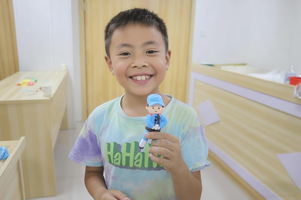 活動尾聲,孩子們與作品合影,笑容與黏土上的紅色相映成趣。志愿者喻庭隆表示,手工創作不僅是技藝傳授,更是“將革命故事從書本搬到指尖,讓愛國情懷在揉捏黏土的過程中生根”。一位參與的小朋友說:“紅軍戰士的帽子好難做,但老師告訴我‘不能放棄,就像戰士守護大家一樣’,我現在懂了堅持的意義。”